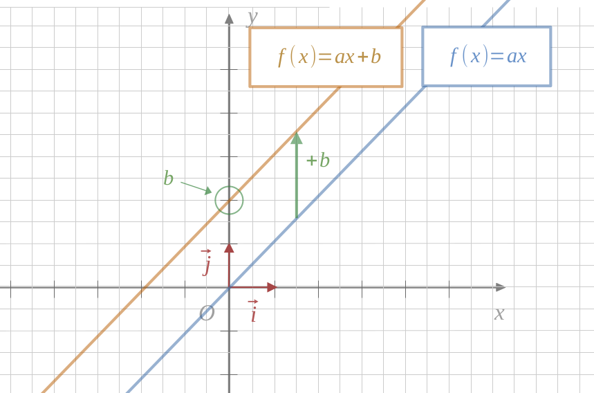 La différence avec une fonction affine, est que l'on en plus un nombre \(b\), que l'on appelle l'ordonnée à l'origine.